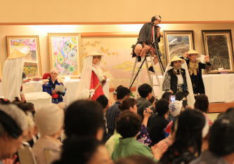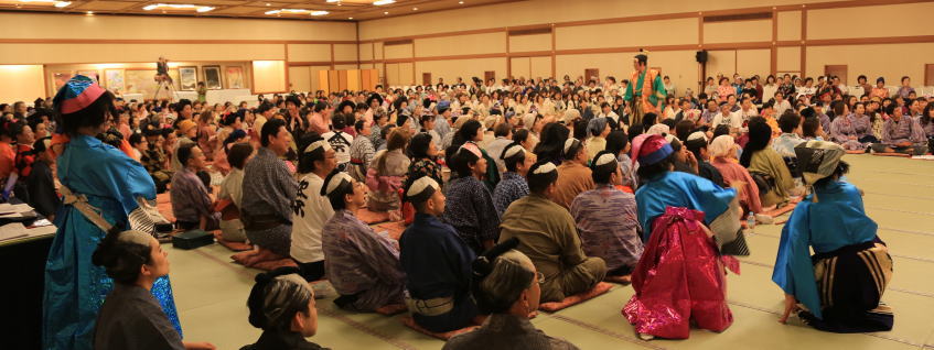 参加者は、全員江戸時代村人または商人となり一緒にミュージカル楽しんでいる。